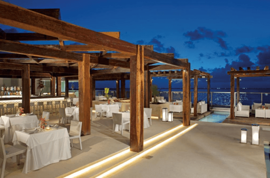 Por la noche, el bar es el lugar perfecto para relajarse y disfrutar de una copa mientras admira las impresionantes vistas del Caribe.