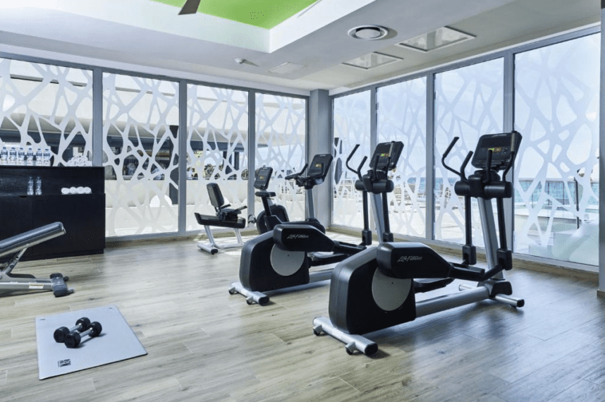 Los huéspedes también pueden disfrutar de un gimnasio bien equipado, perfecto para mantenerse en forma durante sus vacaciones.