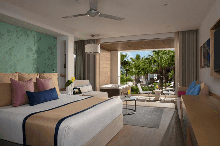Las parejas disfrutarán de las suites privadas, muchas de las cuales ofrecen acceso directo a la piscina y vistas espectaculares al océano.